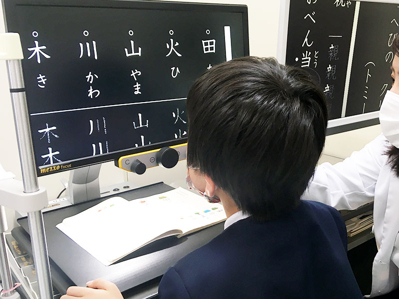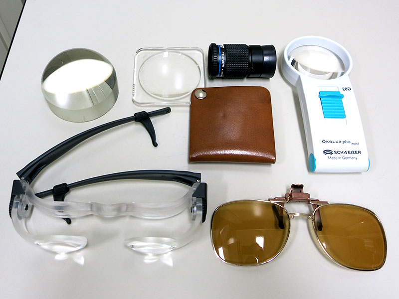 視覚リハ外来では、見えにくくなった患者さまに、視覚補助具の選定(拡大鏡・拡大読書器・遮光眼鏡等)、福祉・保険制度の紹介(障害者手帳・障害年金等)、関連機関の案内(訓練施設・訪問指導事業所・特別支援学校・交流会等)などを行っています。